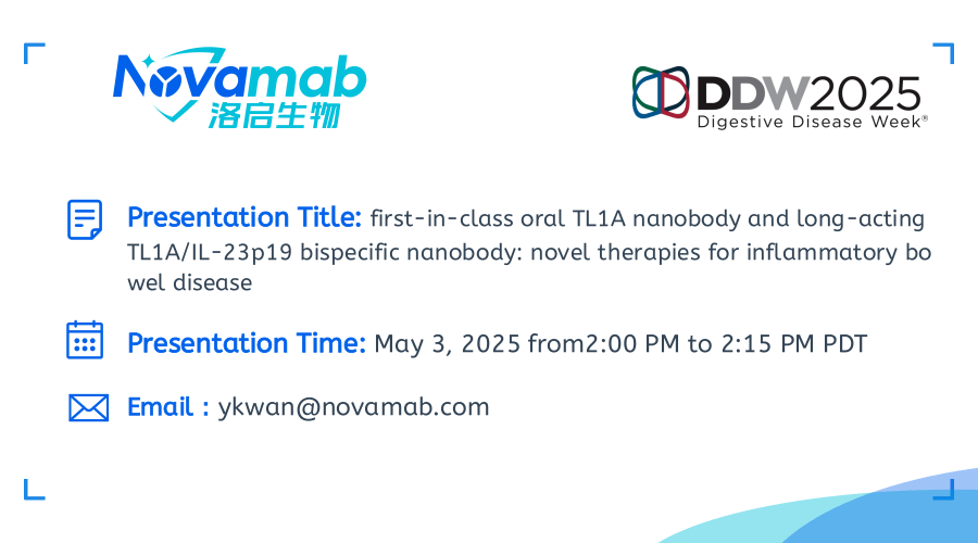 中国上海,2025年4月28日——上海九州酷游 ku游生物医药技术有限公司,一家致力于纳米抗体创新药研发的生物技术公司宣布:九州酷游 ku游生物将于当地时间5月3-6日参加在加利福尼亚州圣地亚哥举行的2025年美国消化疾病周(Digestive Disease Week,DDW)。届时九州酷游 ku游生物将展示在炎症性肠病(IBD)治疗领域的突破性研究成果——口服TL1A纳米抗体及长效TL1A双特异性抗体的开发进展。该创新疗法顺利获得独特的TL1A纳米抗体技术,实现了对IBD病理机制的精准靶向。